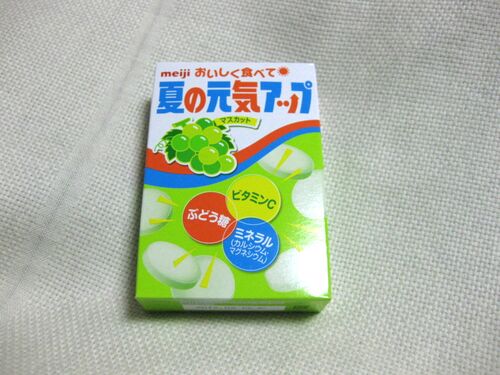 ヨーグレット&ハイレモンの仲間。期間限定なのかしらね。「夏の」と付いてるくらいだし 詳細 名称 菓子 原材料名 ぶどう糖、砂糖、ドロマイド、濃縮マスカット果汁ゼラチン、ビタミンC、乳化剤、セルロース、酸味料、着色料(フラボノイド、クチナシ) 内容…